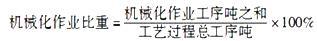 解析 装卸作业中,机械完成的工序吨占工艺过程工序吨的百分比,称为机械化作业比重。公式如下: