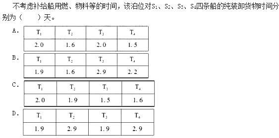 解析 纯装卸货物时间=实际载重量昼夜装卸效率。对应各船求得纯装卸货物时间T分别为:1.9天、1.6天、2.9天和2.2天。