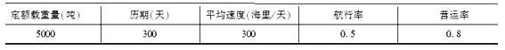 某船公司船舶资料如下表:该船从甲港出发,装载4000吨货物去乙港,在乙港卸货2000吨继续航行至丙港,卸完货后航次结束,甲港到乙港的距离为1000...