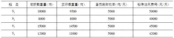问题 现有四条船排队等候一个泊位进行装卸作业。船和港口有关资料如下: 请根据上述资料,回答下列问题: 如果要船舶平均在港停泊时间最短,哪种开工顺序最合理?(  )