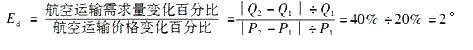 问题 某一航线上的机票价格上升20%,使得该航线上的旅客需求减少40%,那么该航线上的旅客需求的价格弹性为(  )。