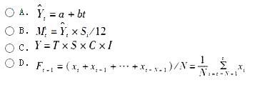 解析 B项为季节指数法的计算公式;C项为时间序列分解模型的计算公式;D项为一次移动平均法的计算公式。