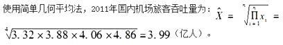 已知2007~2010年国内机场旅客吞吐量如表所示。使用简单几何平均法预测2011年国内机场旅客吞吐量为(  )亿人。A.3.99 B.4.03 ...