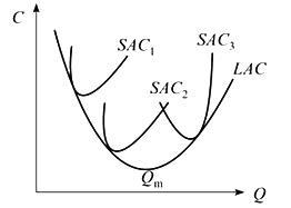 解析 长期总成本(LAC)由短期总成本(SAC)中最小的值所构成。体现为长期总成本曲线分别是短期总成本曲线的包络曲线。如图所示。 图 长期总成本曲线