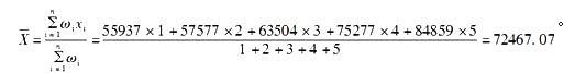 已知2006~2010年通用航空的作业飞行小时为55937,57577,63504,75277,84859,使用加权算术平均法(权值分别为1,2,3,4,...