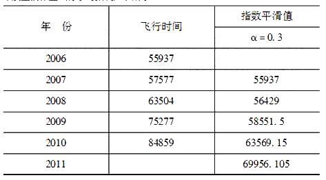 已知2006~2010年通用航空的作业飞行小时为55937、57577、63504、75277、84859,使用一次指数平滑法(初值取2006年的实际值,...