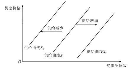 解析 如果对应原来的每一价格水平,航空旅客运输供给量都会增加,供给曲线从原来的位置向右下方移动,这种状况称为供给增加;反之,如果对应原来的每一价格水平,航空旅客运输供给量都会减少,供给曲线从原来的位置向左上方移动,这种状况称为供给减少。如图所示为供给曲线的移动。 图 供给曲线的移动