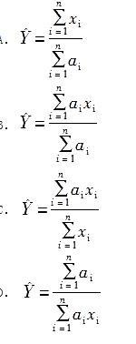 若--预测值,xi--第i期数值,ai--第i期对应的权数,则采用加权平均法进行预测的计算公式为(  )。