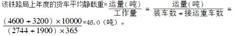 设某铁路局上年度发送货物4600万吨,接运货物3200万吨,平均日装车2744车,日接重车1900车,货物平均运程360公里,运行吨公里比计费吨公里多1%...