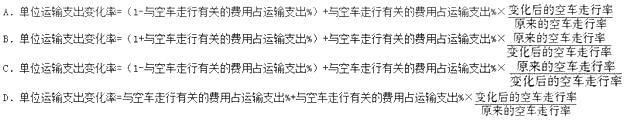 解析 对空车走行率而言,它的变化对成本的影响如下式所示: 单位运输支出变化率=(1-与空车走行有关的费用占运输支出%)+与空车走行有关的费用占运输支出%*
