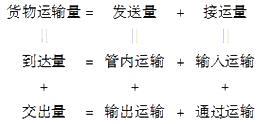 解析 货物运输量是其管内各站、段货物发送量与分界站货物接运量之和,或货物到达量与交出量之和。货物运输量可分为管内、输出、输入、通过四种运输,关系如图所示。