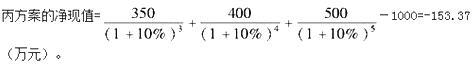 选项 A、B、C、D四个投资方案,方案有关数据如表2所示,折现率为10%,经济寿命均为5年。 丙方案净现值为(  )万元。 A.205.82 B.62.79 C.-153.37 D.158.14