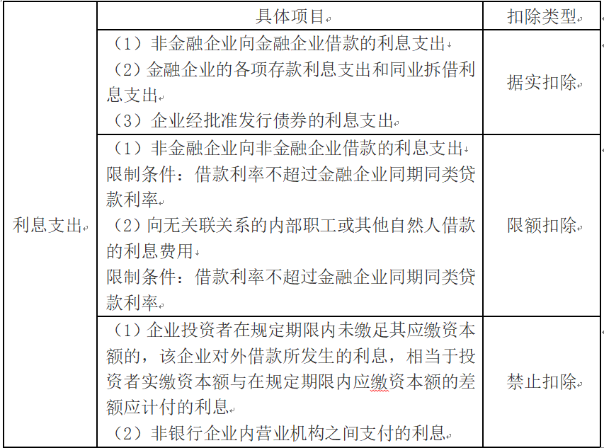选项 A.非金融企业向金融企业借款的利息支出可据实扣除 B.金融企业的各项存款利息支出和同业拆借利息支出可据实扣除 C.企业经批准发行债券的利息支出可据实扣除 D.非金融企业向非金融企业借款的利息支出,不超过金融企业同期同类贷款利率计算的数额的部分可据实扣除 E.企业投资者在规定期限内未缴足其应缴资本额的,该企业对外借款所发生的利息,相当于投资者实缴资本额与在规定期限内应缴资本额的差额应计付的利息,不得在税前扣除 F.非银行企业内营业机构之间支付的利息可据实扣除