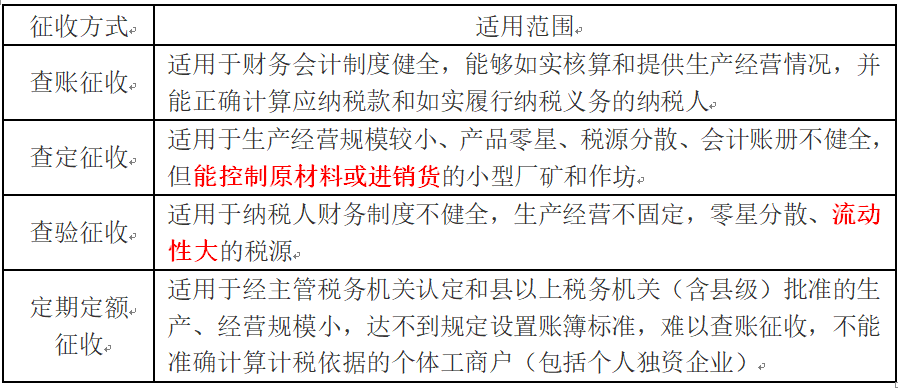 问题 【子题2 多选题】上述各项中,属于税款征收方式的有: