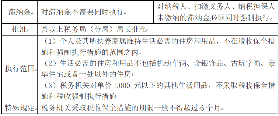 解析 【答案】ABEFGHJ 易错易混点辨析 税收保全措施和税收强制执行措施的相同点和不同点,主要体现如下。