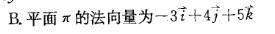 设平面π的方程为3x-4y-5z-2=0,以下选项中错误的是: A.平面π过点(-1,0,-1) C.平面π在Z轴的截距是-2/5 D.平面...