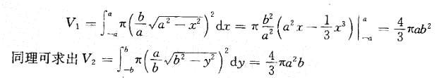 问题 椭圆x2/a2+y2/b2=1(a>b>0)绕x轴旋转得到的旋转体体积V1与绕y轴旋转得到的旋转体体积V2之间的关系为: A.V1>V2 B.V1﹤V2 C.V1=V2 D.V1=3V2