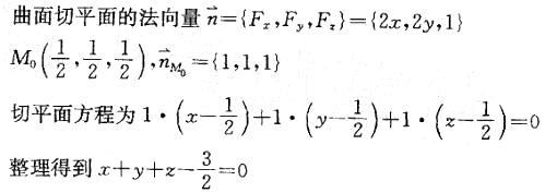 曲面z=1-x2-y2在点(1/2,1/2,1/2)处的切平面方程是: A.x+y+z-3/2=0 B.x-y-z+3/2=0 C.x-y+z-...