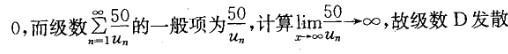 解析 提示:利用级数性质易判定选项A、B、C均收敛。