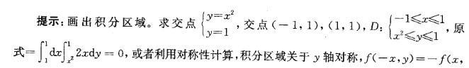 解析 y),函数是关于x的奇函数,二重积分为0。
