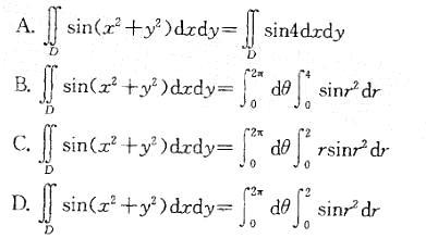 设D为圆域x2+y2≤4,则下列式子中哪一式是正确的?