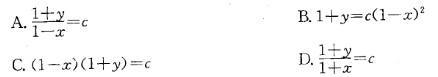 问题 微分方程(1+y)dx-(1-x)dy=0的通解是(c为任意常数):