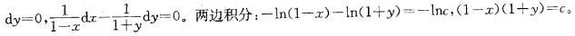 解析 提示:此题为一阶可分离变量方程,分离变量后,两边积分。微分方程(1+y)dx-(1-x)