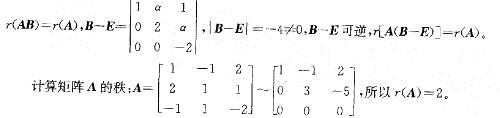 解析 提示:AB-A=A(B-E),由矩阵秩的性质可知,若A可逆,则r(AB)=r(B),若B可逆,则