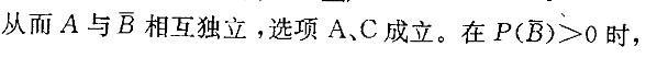 若P(A) >0,F(B) >0,P(A B)=P(A),则下列各式不成立的是: A. P(B A)=P(B) C. P(AB)=P(A)P(B)...