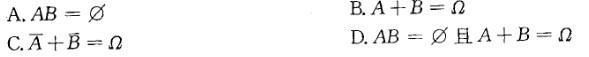 问题 当下列哪项成立时,事件A与B为对立事件?