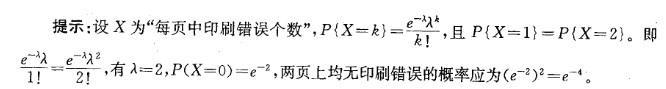 设书籍中每页的印刷错误个数服从泊松分布。若某书中有一个印刷错误的页数与有两个印刷错误的页数相等,今任意检验两页(两页错误个数相互独立),则每页上都没有印刷...
