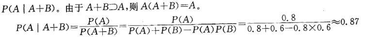 问题 甲乙两人独立地向同一目标各射击一次,命中率分别为0. 8和0. 6,现已知目标被击中,则它是甲射中的概率为: A. 0. 26 B. 0. 87 C. 0. 52 D. 0. 75