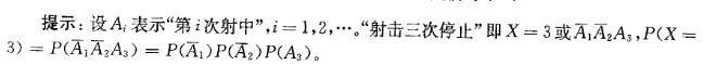 问题 某人连续向一目标独立射击(每次命中率都是3/4),一旦命中,则射击停止,设X 为射击的次数,那么射击3次停止射击的概率是: