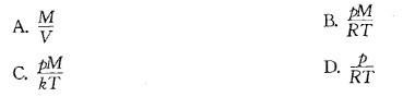 问题 已知某理想气体的压强为p,体积为V,温度为T,气体的摩尔质量为M,k为玻兹曼常量,R为摩尔气体常量。则该理想气体的密度为: