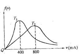 图示给出温度为T1与T2的某气体分子的麦克斯韦速率分布曲线,则T1与T2的关系为: A. T1=T2 B.T1=(1/2)T2 C.T1=2T2...