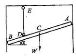 均质杆AB长为l,重为W,受到如图所示的约束,绳索ED处于铅垂位置,A、B两处为光滑接触,杆的倾角为α,又CD = l/4,则 A、B两处对杆作用的约束力...