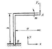 问题 图示平面刚性直角曲杆的支承力、尺寸与荷载均已知,且Fpa>m。B处插入端约束的全部约束力各为: