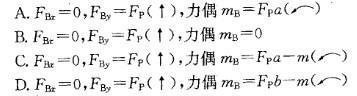 图示平面刚性直角曲杆的支承力、尺寸与荷载均已知,且Fpa>m。B处插入端约束的全部约束力各为: