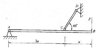 问题 图示结构在水平杆AB的B端作用一铅直向下的力P,各杆自重不计,铰支座A的反力FA的作用线应该是: A. FA沿铅直线 B. FA沿水平线 C. FA沿A、D连线 D. FA与水平杆AB间的夹角为30°