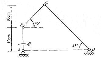 平面四连杆机构ABCD如图所示,如杆AB以等角速度ω= 1rad/s绕A轴顺时针向转动,则CD杆角速度ωCD的大小和方向为: A. ωCD= 0. ...