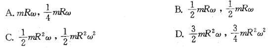 问题 均质圆盘质量为m,半径为R,在铅垂平面内绕O轴转动,图示瞬时角速度为ω,则其对O轴的动量矩和动能大小分别为:
