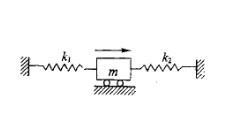 问题 图示质量为m的物块,用两根弹性系数为k1和k2的弹簧连接,不计阻尼,当物体受到干扰力F=hsinωt的作用时,系统发生共振的受迫振动频率ω为:
