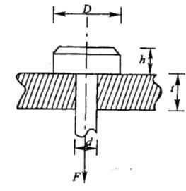 螺钉受力如图所示,一直螺钉和钢板的材料相同,拉伸许用应力[σ]是剪切许用应力的2倍,即[σ]=2钢板厚度t是螺钉头高度h的1.5倍,则螺钉直径d的合理值为...