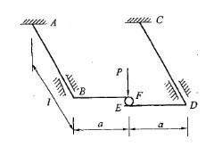 问题 已知钢杆AB和铝杆CD的尺寸相同,且其材料的剪切弹性模量之比GAB:GCD=3:1,BF和ED杆为刚性杆。则荷载P分配于BF和ED杆上的比例是: A. 9:1 B. 1 : 9 C. 1 : 3 D. 3 : 1