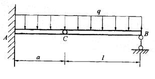 问题 图示梁具有中间铰链C,试作AB梁的剪力图和弯矩图。如欲使该梁的最大弯矩的绝对值最小,则a/l应等于: A.0.618 B.0.5 C. 0. 207 D. 0.1