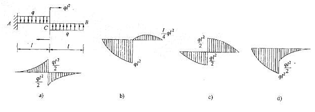 如图所示悬臂梁,其正确的弯矩图应是: A.图 a)B.图 b) C.图 c)D.图 d)