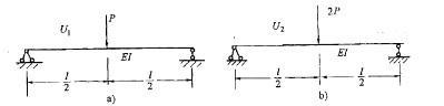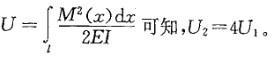 如图所示两梁中的弹性变形能分别为U1和U2,则二者的关系是: A.U2=2U1 B.U2=4U1 C.U2=6U1 D.U2=8U1