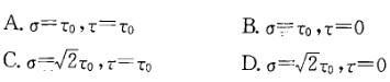 图示为等腰直角三角形单元体,已知两直角边表示的截面上只有剪应力, 且等于τ0,则底边表示截面上的正应力σ和剪应力τ分别为: