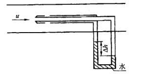 如图所示,用一附有水压差计的毕托管测定某风道中空气流速。巳知压差计的读数Δh= 185mm,水的密度ρ=1000kg/m3,空气的密度ρa=1. 20kg...