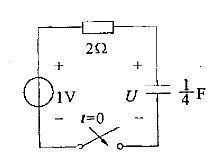 电路如图所示,电容初始电压为零,开关在t=0时闭合,则时t≥0时u(t)为 A.(1-e-0.5t)V B.(1+e-0.5t)V C.(1...